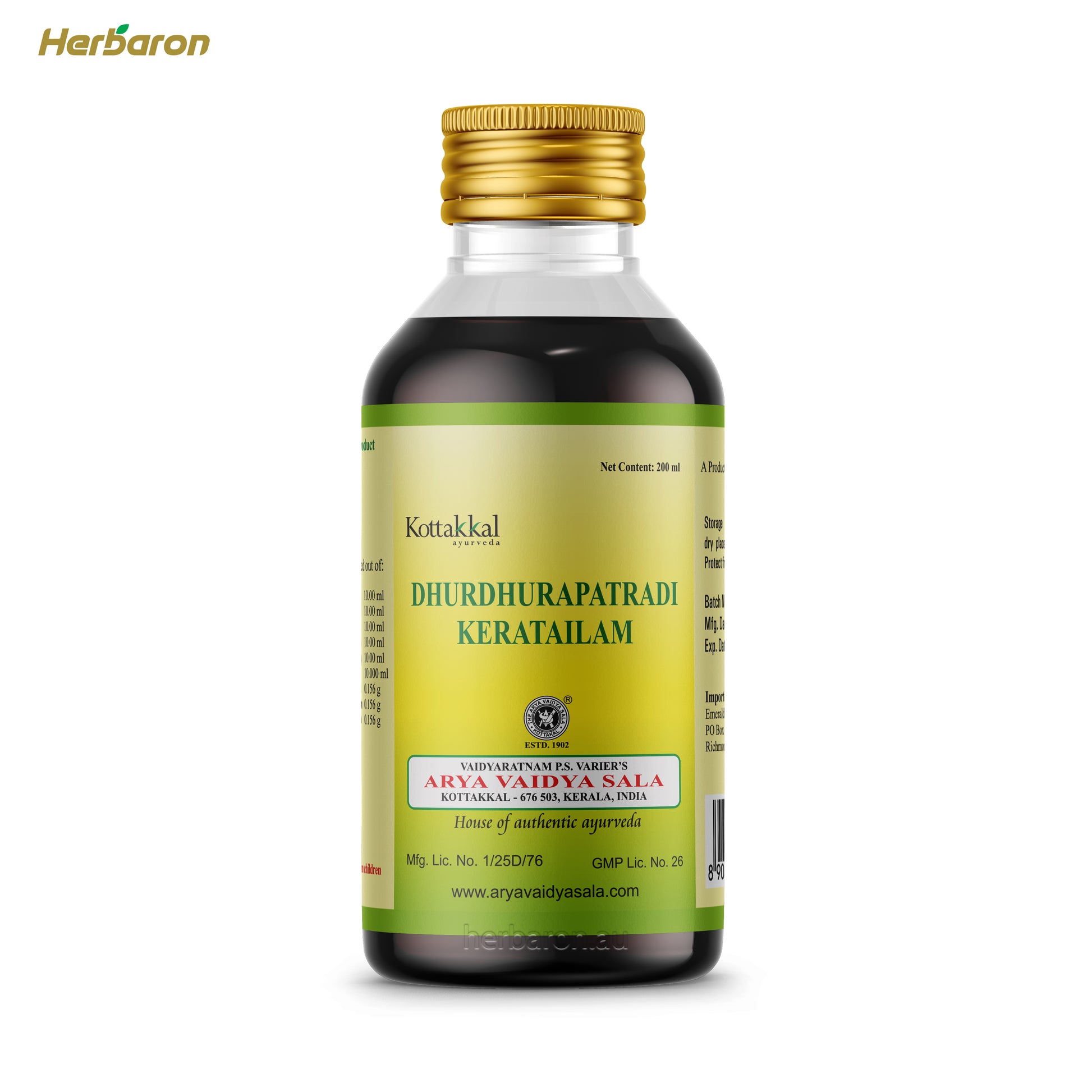 Transform Your Hair Care Routine Experience the holistic benefits of Kottakkal Dhurdhurapatradi Kera Tailam and transform your hair care routine. Say goodbye to dandruff, itching, and hair fall, and embrace healthy, beautiful hair with this Ayurvedic oil.